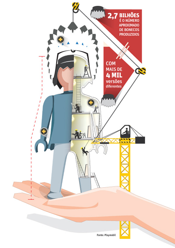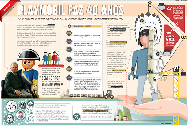 Infografia criada e publicada no Jornal O Tempo no dia 17/08/2014. Uma homenagem aos 40 anos do boneco Playmobil.